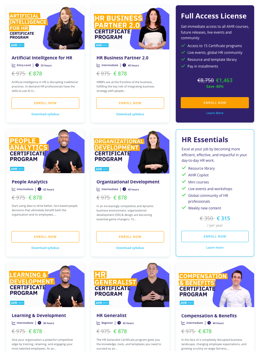 - HR Essentials - access to the AIHR platform, without access to courses